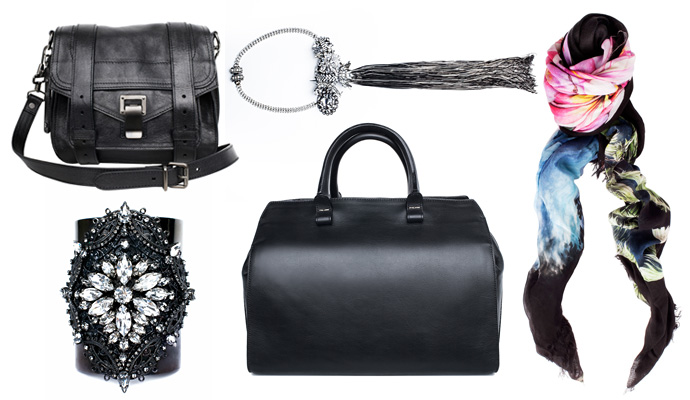 Bag Proenza Schouler, bracelet Erickson Beamon, handbag Victoria Beckham, Necklace Erickson Beamon, a scarf Stella McCartney